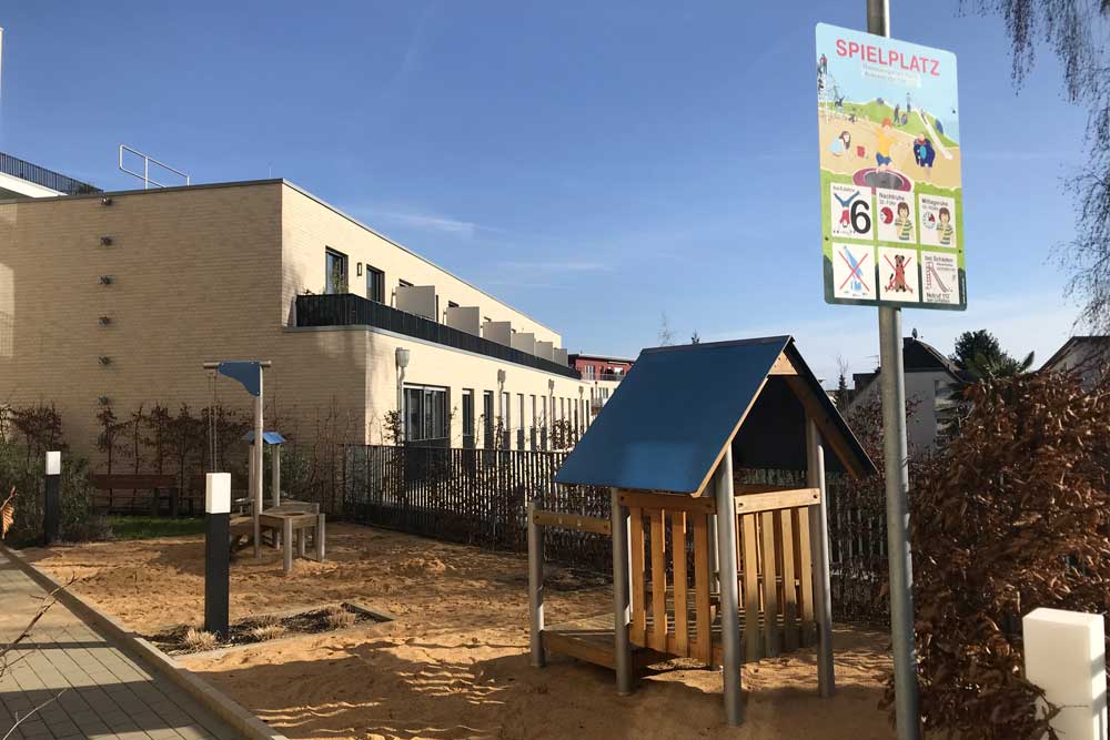Erdgeschoss. Ein kleiner Kinderspielplatz liegt unmittelbar hinter der Praxis.